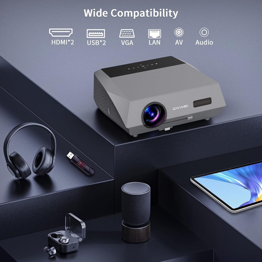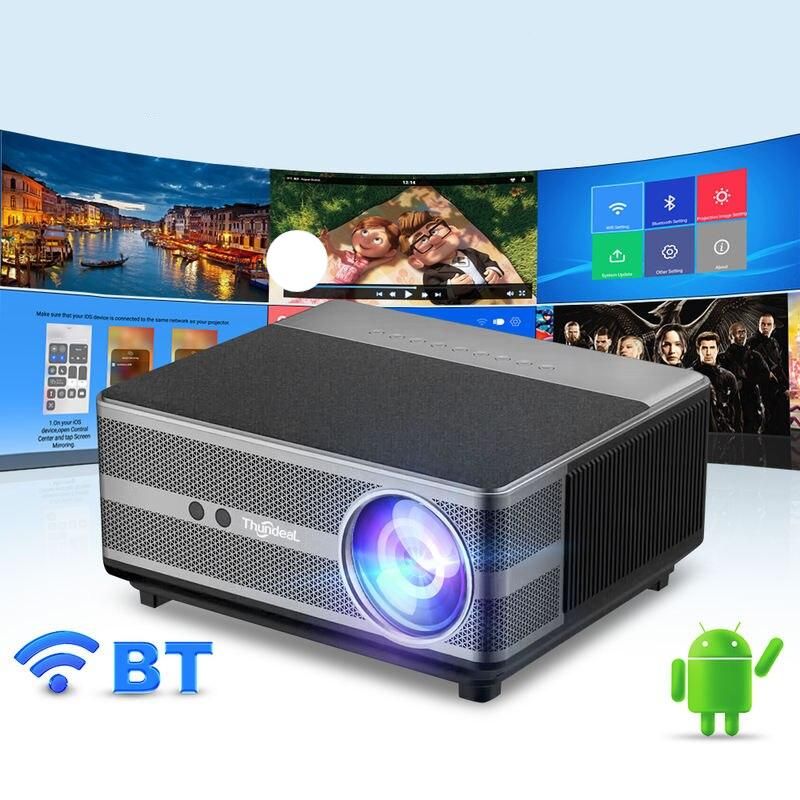 Full HD 1080P WiFi LED Projector with Android OS, 2K 4K Video Support, and Auto Keystone Correction