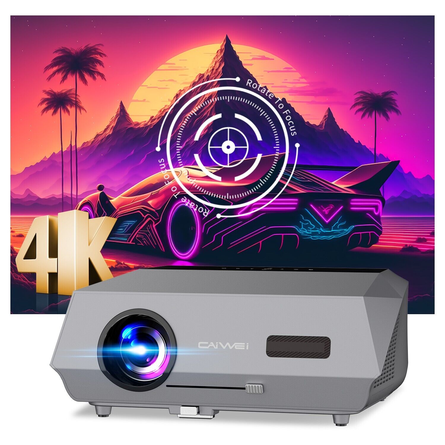 Portable Full HD 1080P Projector with 4K Support and Bluetooth 5.1