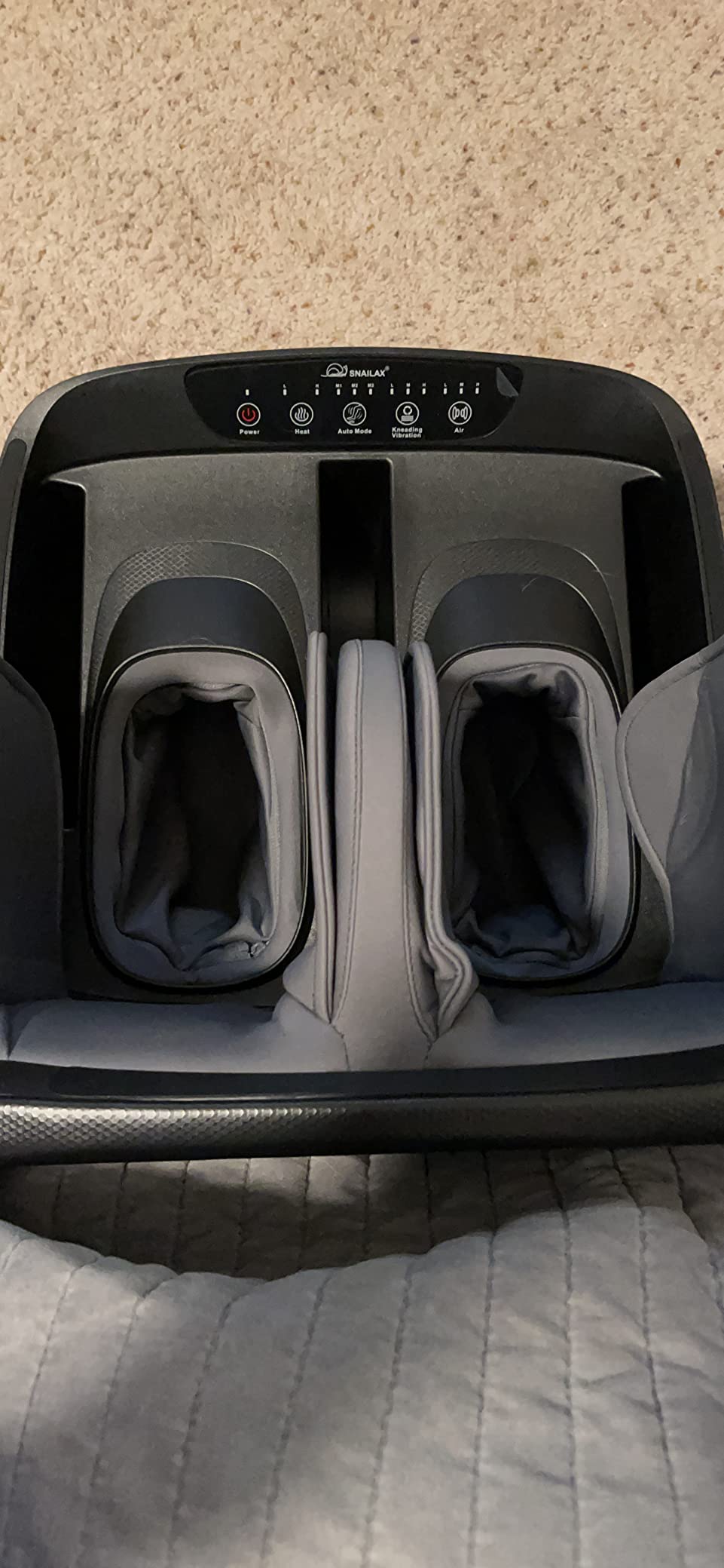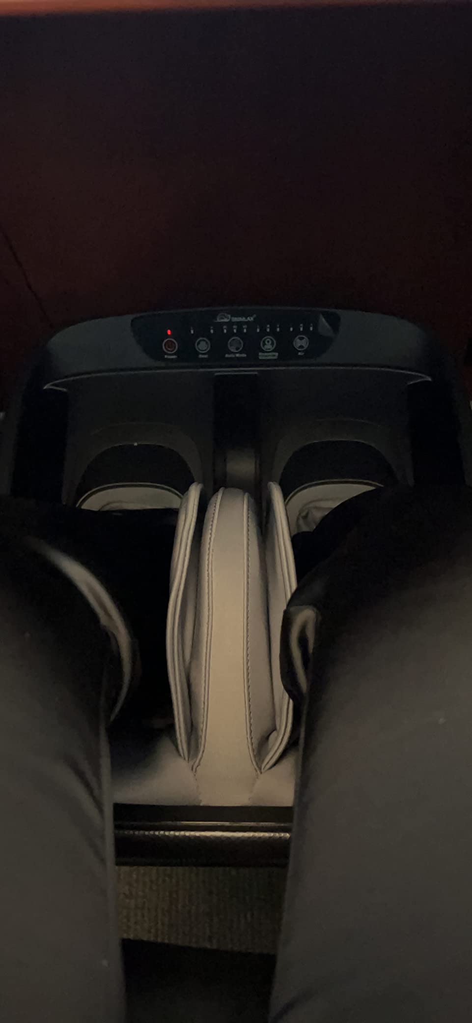 Spent days reviewing leg massagers and settled on this one – so glad I did. It lives up to its description, making my feet and legs feel rejuvenated. Bought it for my husband who suffers from restless leg syndrome, neuropathy, and poor circulation, and he’s been using it 2-3 times a day with noticeable improvement. The air compression and roller pressure are perfectly relaxing. A remote would make it easier to use for those under 6 feet tall, as reaching for controls can be a stretch. The design is space-saving too, which is a huge plus. Would buy again without hesitation.