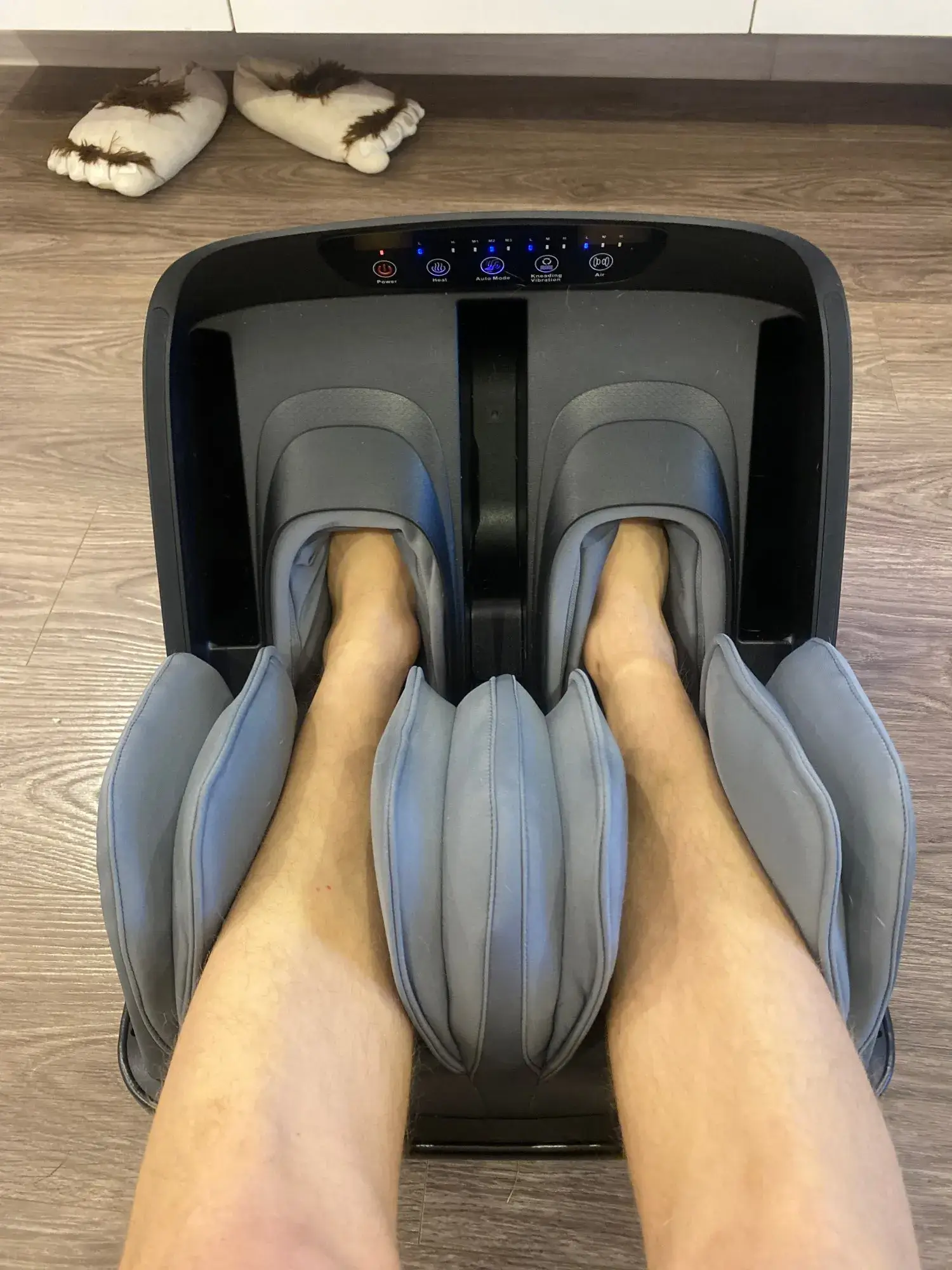 Remember, this is a machine, so it’s not going to replicate a human massage perfectly. But after a tough leg day, this thing is a lifesaver. It’s straightforward to use, especially if you glance at the instructions first. While the calf pressure wasn’t as intense as I’d hoped due to my thin legs, the foot massage part is excellent. You can adjust the intensity to your liking, and lying down while using it hasn’t been an issue for me.