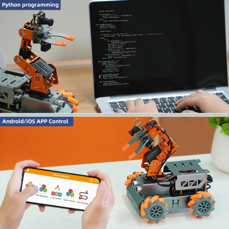 The assembly process was a fantastic learning experience in itself, teaching valuable lessons in following instructions, understanding mechanical and electronic components, and the satisfaction of building something from scratch. The Omni-directional Mecanum Wheels were an instant hit, providing a unique movement experience that fascinated the kids and sparked numerous questions about mechanics and engineering. The 5DOF Robotic Arm added another layer of educational value, offering a hands-on introduction to robotics and the complexities of movement and control.
