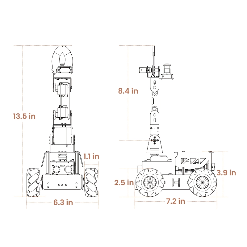 This robot has become an indispensable part of my hobbyist toolkit. From the moment I began assembling it, I was struck by the thoughtful design and the quality of the components. The Omni-directional Mecanum Wheels allow for fluid, precise movement in any direction, making it perfect for navigating complex environments. The 5DOF Robotic Arm has become my favorite feature, with its ability to perform detailed tasks and mimic intricate movements.