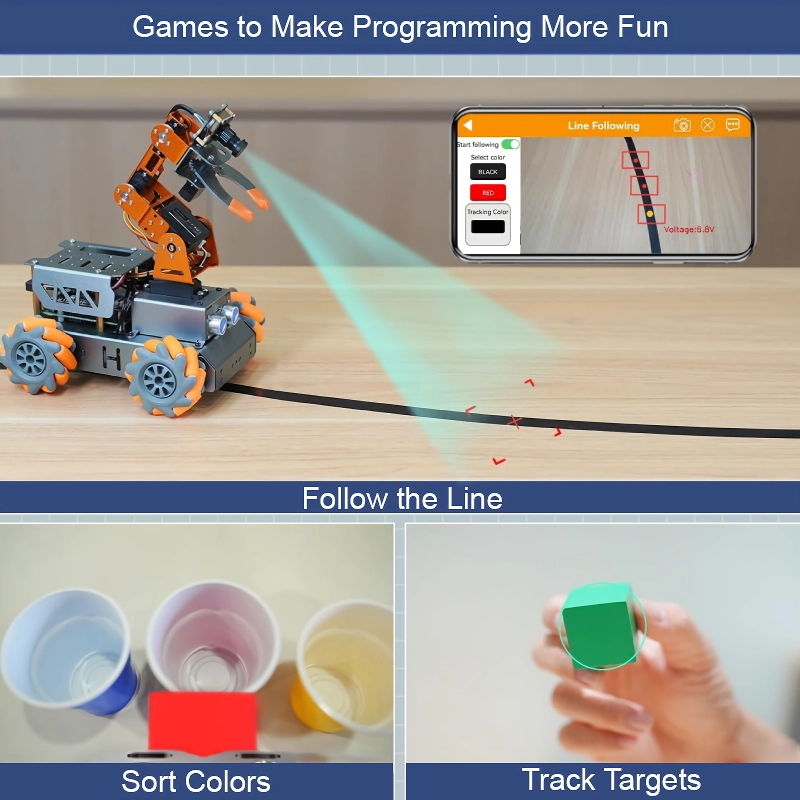 A fantastic educational robot with impressive Mecanum Wheels and a highly versatile arm. The camera and connectivity add a lot of possibilities, though I encountered some minor glitches with the app. Great for budding engineers with a little patience.