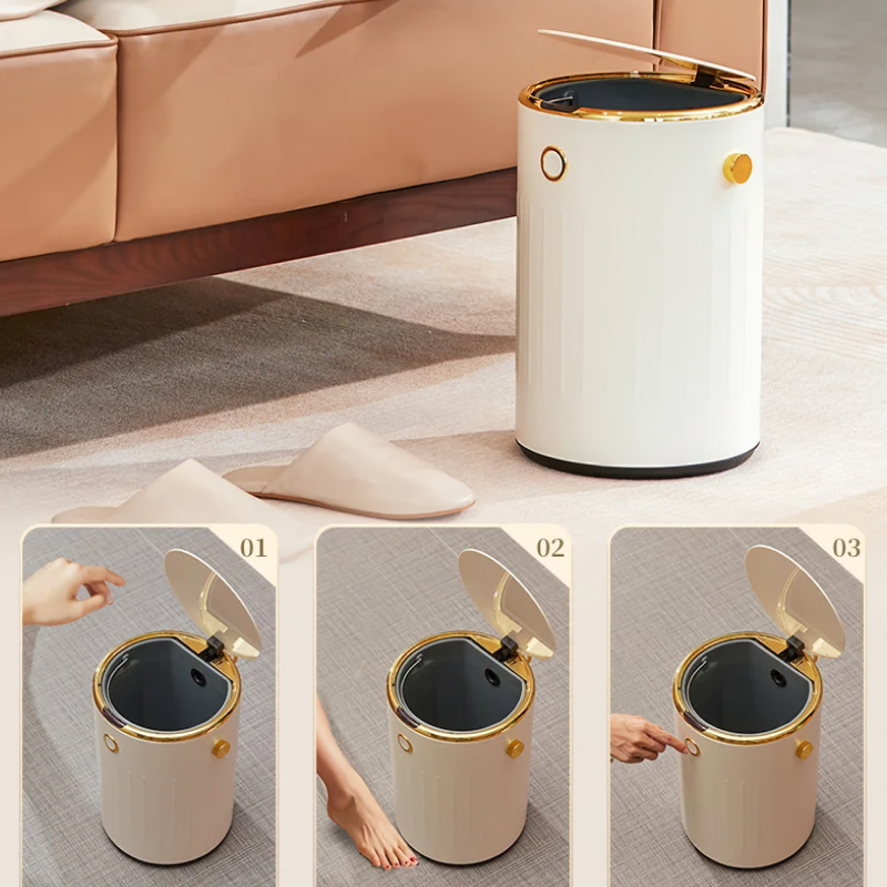 This trash can is not just a waste receptacle but a piece of modern technology that enhances the cleanliness and functionality of our home. The intelligent induction system works flawlessly, providing a hygienic way to dispose of trash without physical contact. The capacity is generous, reducing the frequency of bag changes, and its operation is so quiet, it’s barely noticeable. The durable, waterproof build adds to its appeal, making it a practical and stylish choice for any room.