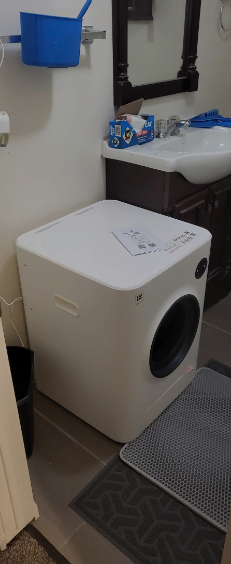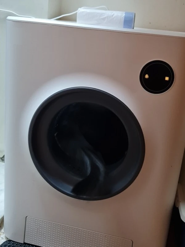 Though this litter box may look like and be as large as a washing machine, it’s a hit with our pets! The app and controls are straightforward, requiring minimal setup. Our cats adapted to it immediately, and it’s impressively effective at minimizing odors, a significant plus for a multi-cat household. Cleaning is a breeze, and it accommodates standard kitchen trash bags for litter disposal. For cat owners who dread the litter box chore, this is a must-have.