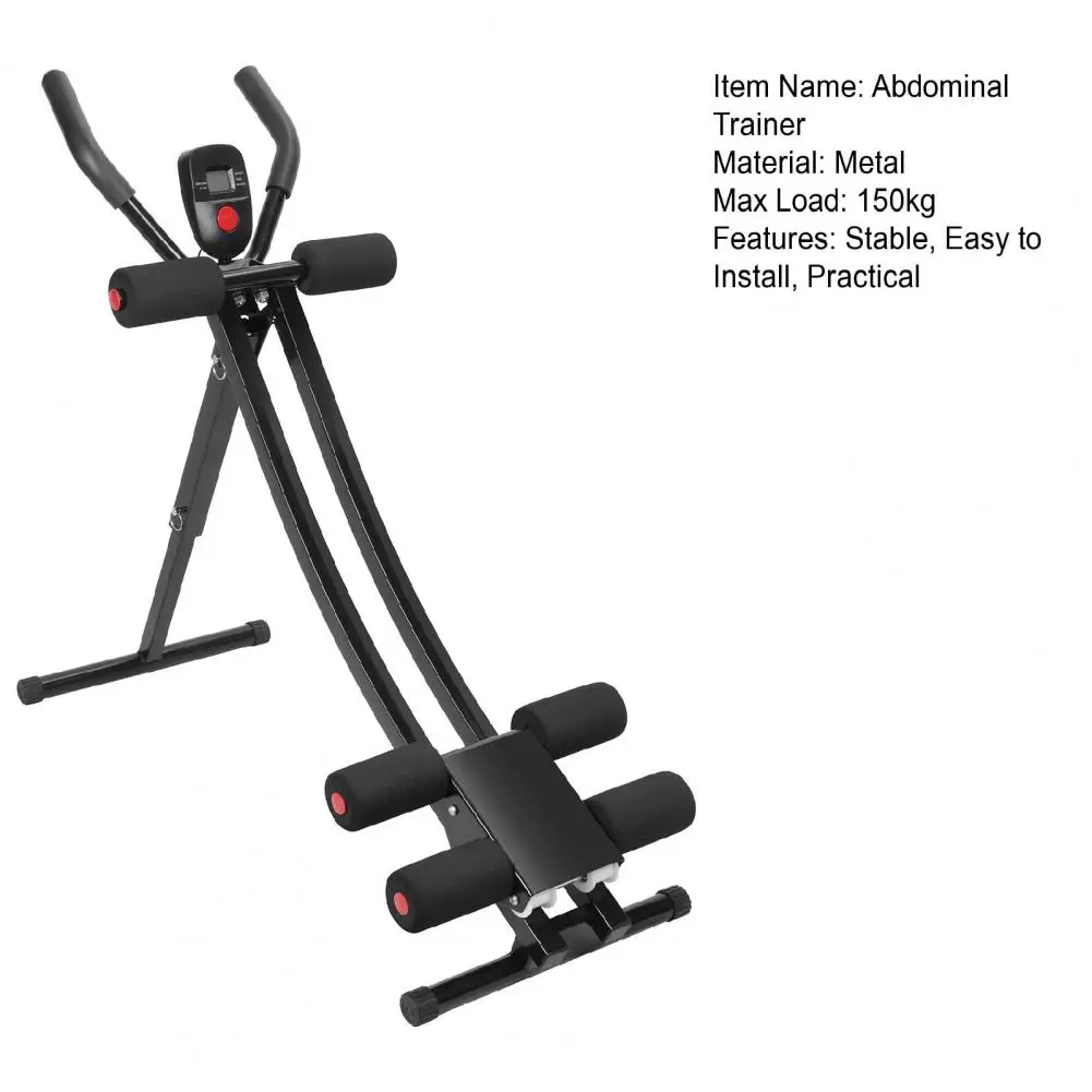 Collapsible Abdominal Machine with LCD Display, 150kg Load Home Gym Ab Trainer Machine with Ergonomic Handle, Easy to Assemble Waist Trainer Workout Equipment for Men Women