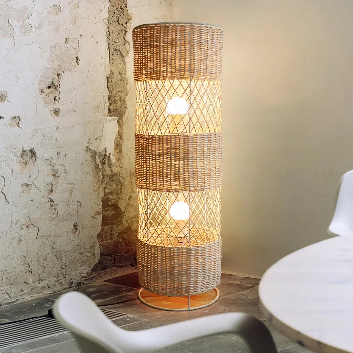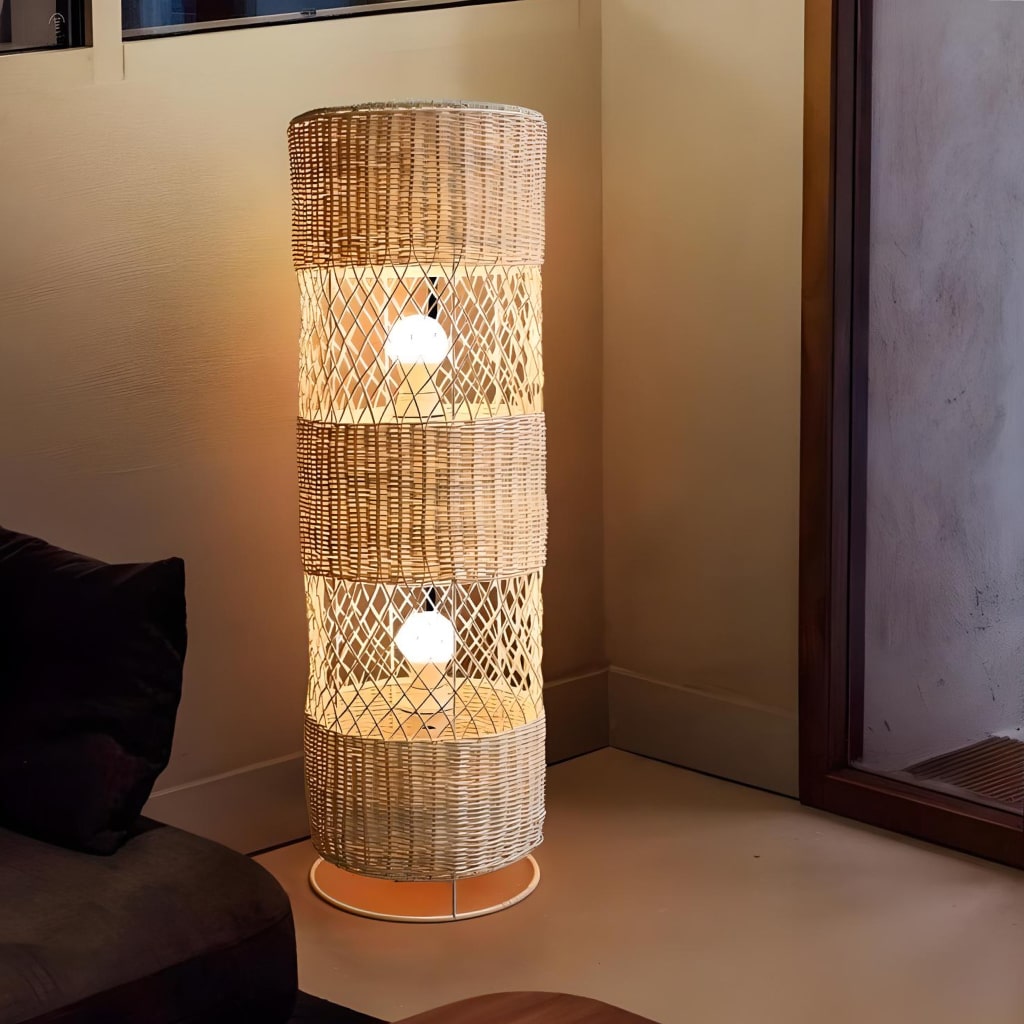Our floor lamp is more than just a light source. It’s a silent art piece that stands testament to skilled weaving techniques. The lamp casts a soft, downward light, perfect for creating a relaxed setting. Its shadeless design and elegant rattan weaving add a touch of nature and simplicity to your space.