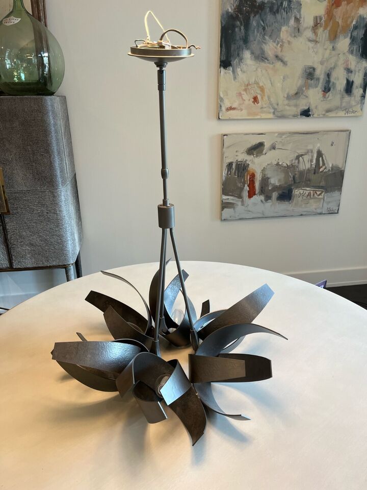Revitalize your home with the Grand Wrought Iron Chandelier, a masterpiece of postmodern design that blends artistic flair with functional luminosity. This striking pendant light is the perfect centerpiece to enhance the ambiance of your dining room, living room, or any area deserving a touch of grandeur. With its forged wrought iron bands and clear glass shades, this chandelier captures the dynamic essence of solar flares, transforming light into a captivating display of warmth and creativity.
