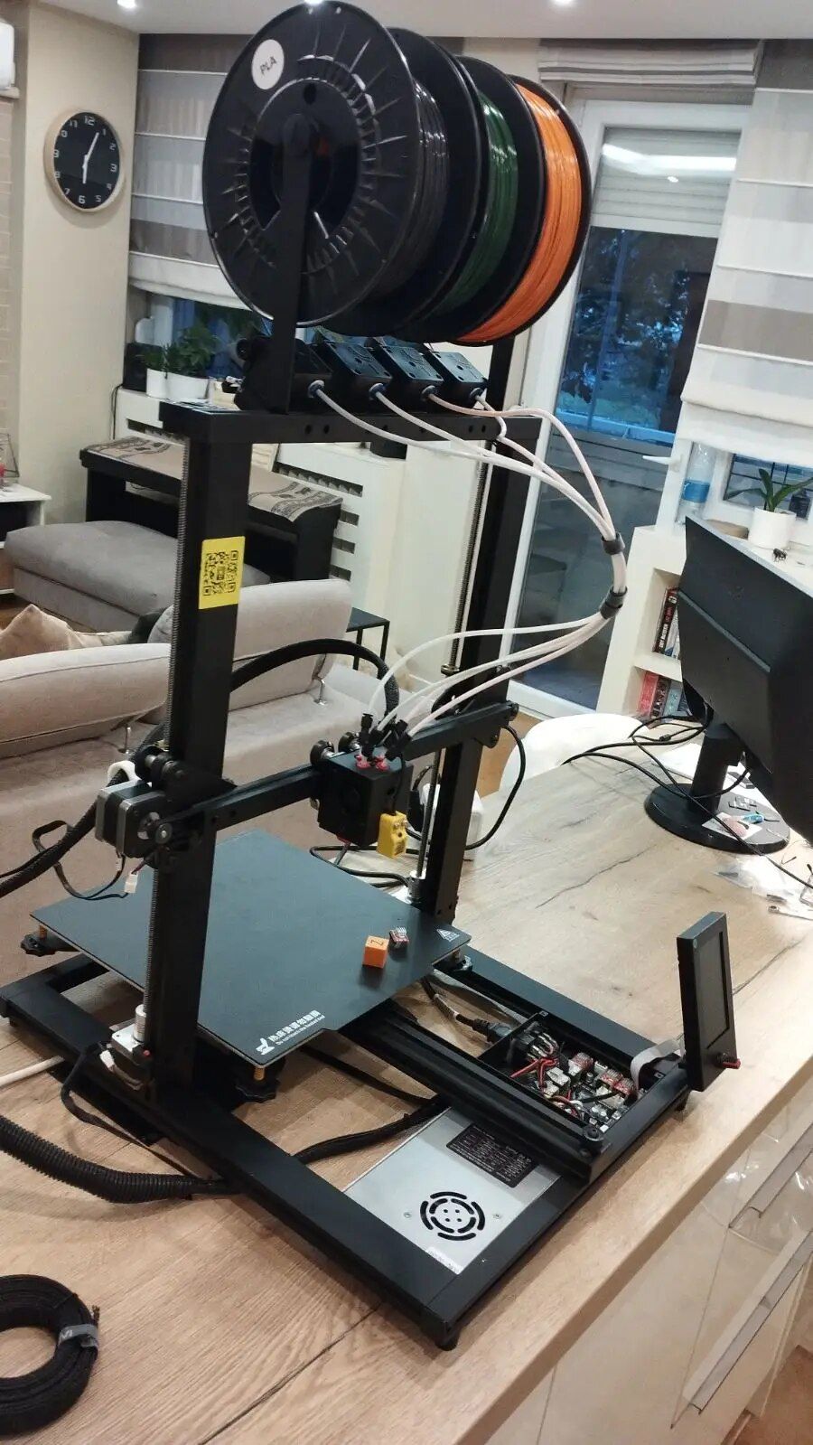 Setting up this 3D printer was a walk in the park, thanks to its semi-assembled state. The robust aluminum frame and metal parts give it a sturdy feel. What truly sets it apart is the 4-IN-1-OUT Extruder—it’s like having a mini factory at home, offering endless possibilities with multi-color prints. The touch screen interface is sleek and makes navigation a breeze. Definitely a high-quality printer that’s worth every penny.