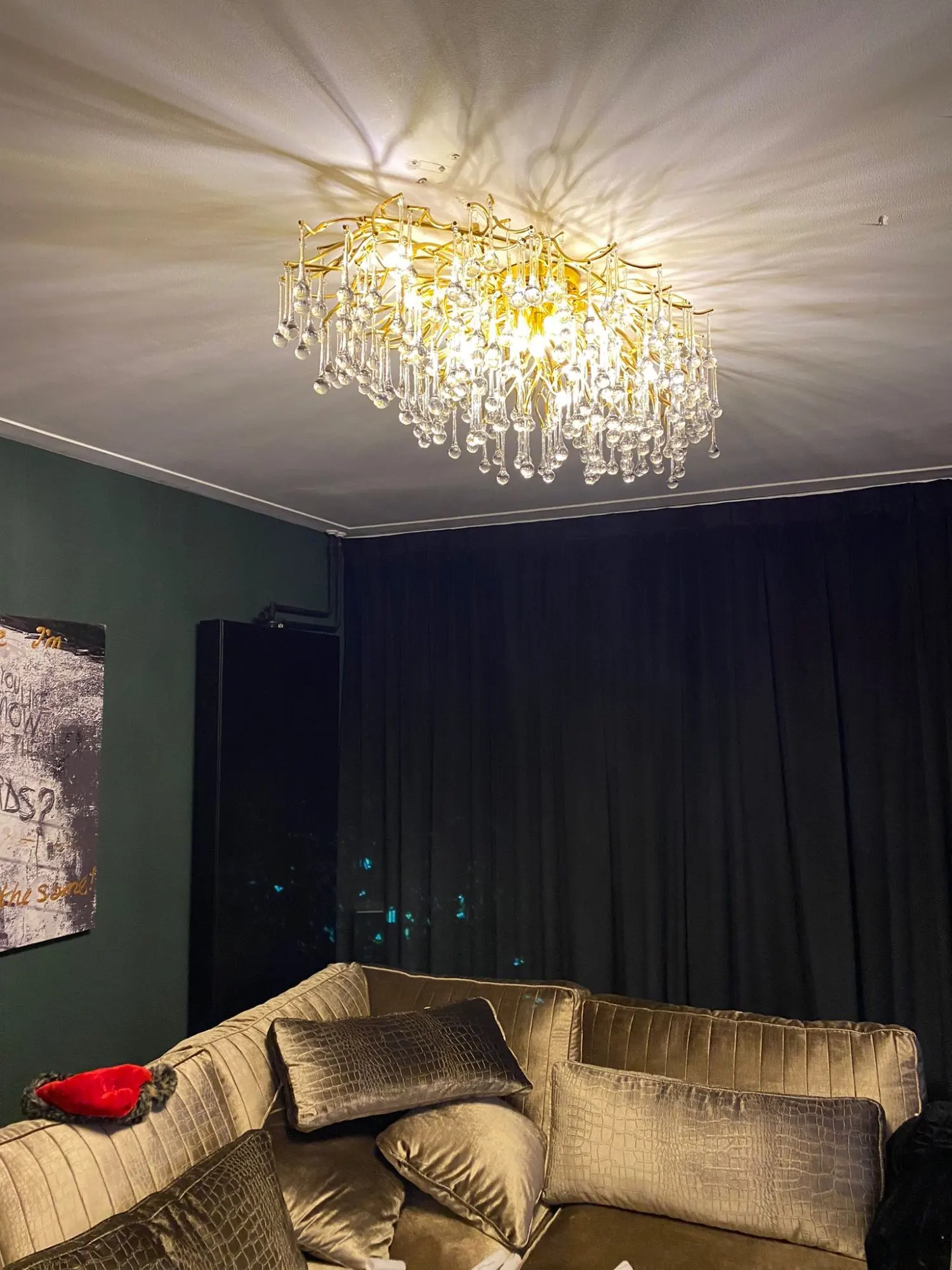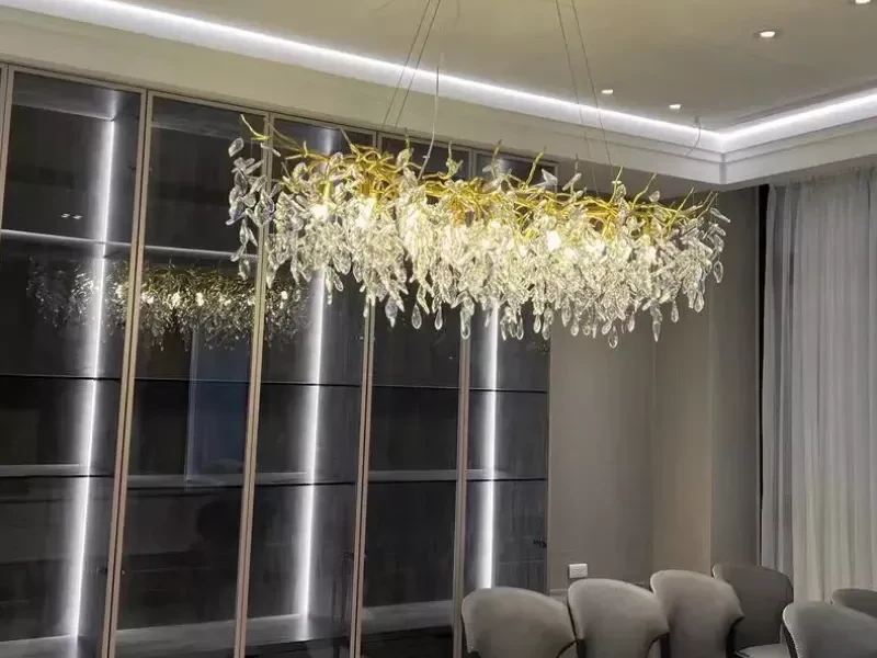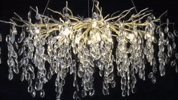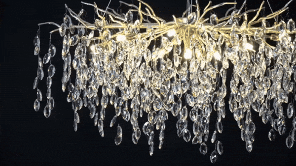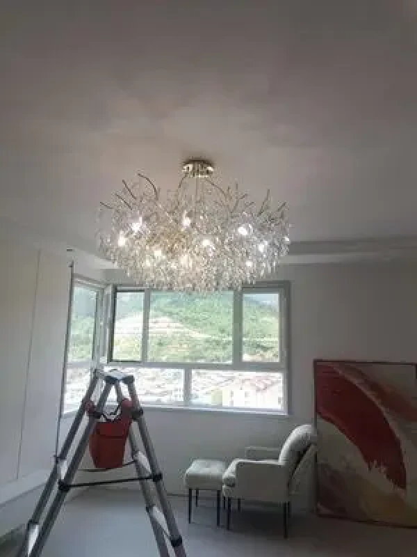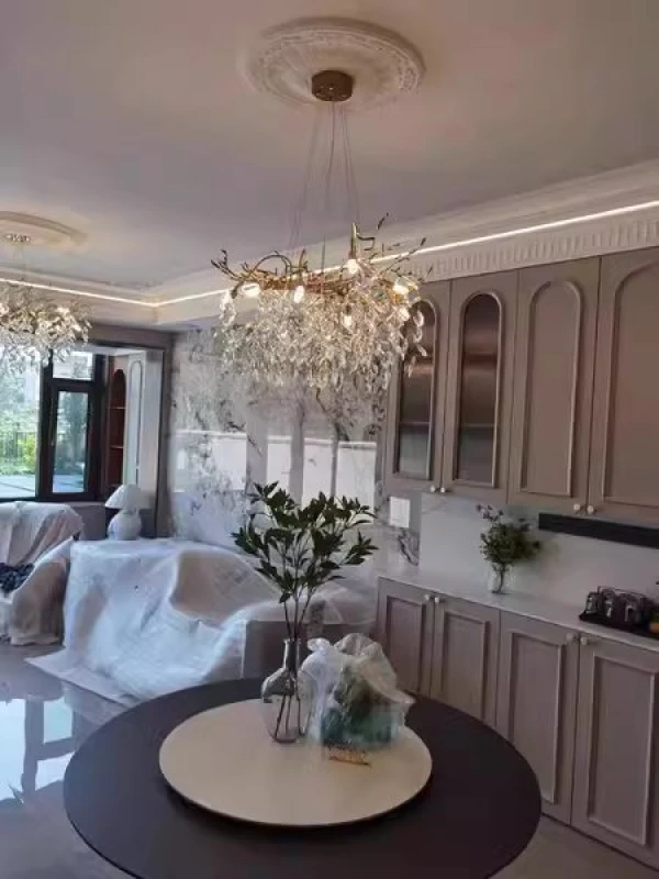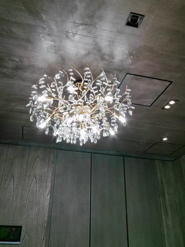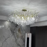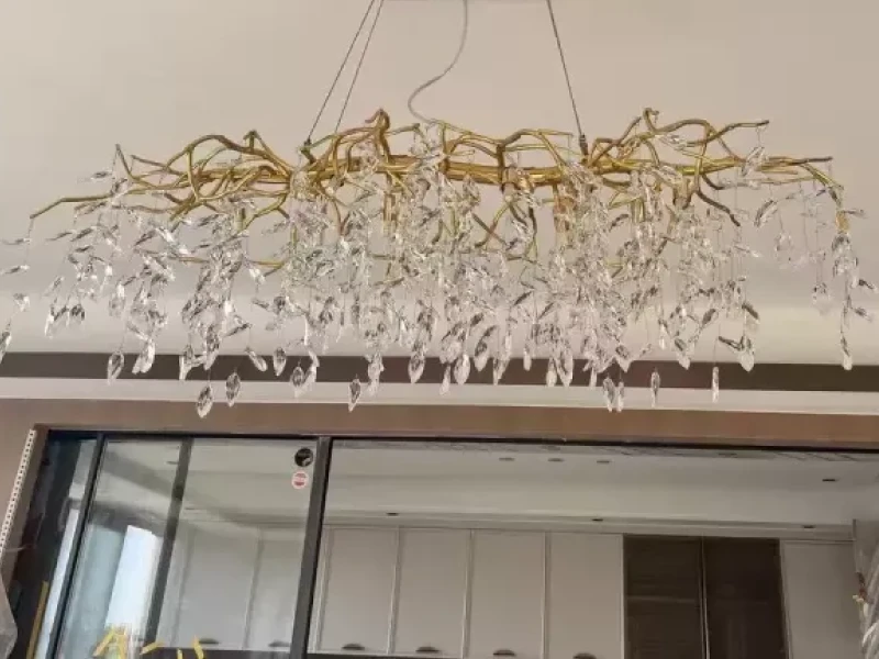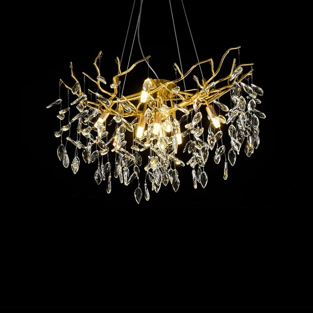 it’s a masterful blend of contemporary design and timeless elegance, encapsulated within a luxurious gold branch frame interwoven with sparkling crystals that seem to dance in the light. From its installation in my living room, the chandelier has not only transformed the space but has also become a beacon of sophistication and style that commands attention.
