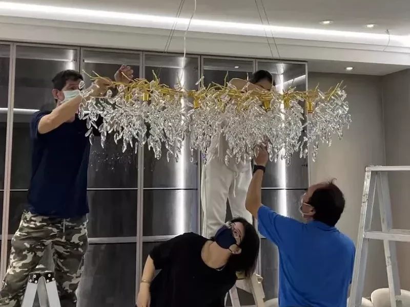 Just looking at my photos, it is very suitable for the restaurant. The installation process was a bit time-consuming, yes, but seeing the chandelier come together was like watching a piece of art being born. The craftsmanship is top-notch, and the light reflection off the crystals is nothing short of magical. It’s the perfect blend of elegance and functionality.