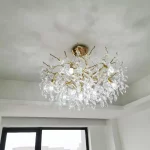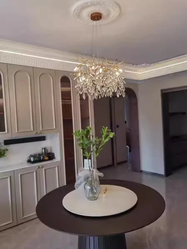 This chandelier is not merely a lighting fixture; it is a pivotal element that marries the opulence of gold with the delicate allure of crystals, creating an atmosphere of sophisticated elegance that transcends the ordinary. The chandelier’s design, featuring a gold branch frame interspersed with glittering crystals, injects a timeless beauty into my space, marrying modern sensibilities with classic luxury.