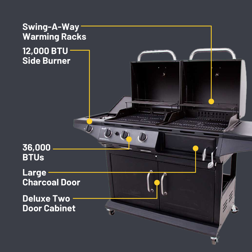 This purchase was to replace my Char Broil bought in 2000, which was still operational after replacing burners and the grate. Despite surviving two wind storms that damaged it, it was swiftly claimed and rebuilt by a neighbor when I set it out. Given how long my old one lasted, I didn’t hesitate to get another Char Broil. The combination of gas and charcoal allows for versatile cooking, and the gas side’s three burners make this grill exceptionally versatile. In short, it’s GREAT!