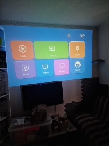 Absolutely adore this projector. It’s proved perfect even for small spaces and has been tested out on a couple of my large, undecorated walls. I had to improvise with some boxes for height, and I’m considering installing a shelf for optimal viewing right from bed. Even on textured walls, the image quality remains impressive. Mirroring content from my phone and using a streaming stick for movies was seamless, thanks to its multiple connectivity options. Although it’s advertised for outdoor use, I’ve yet to try it out there due to the weather.