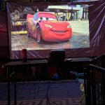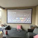 The image quality is crisp and bright, and the sound’s really good – loud enough for big rooms or outside. You can hook it up to a sound bar too. Loved that you can project either from the front or back of your screen. We used a plain white canvas as our screen. It’s light, easy to hang or prop up, and gives a great picture.