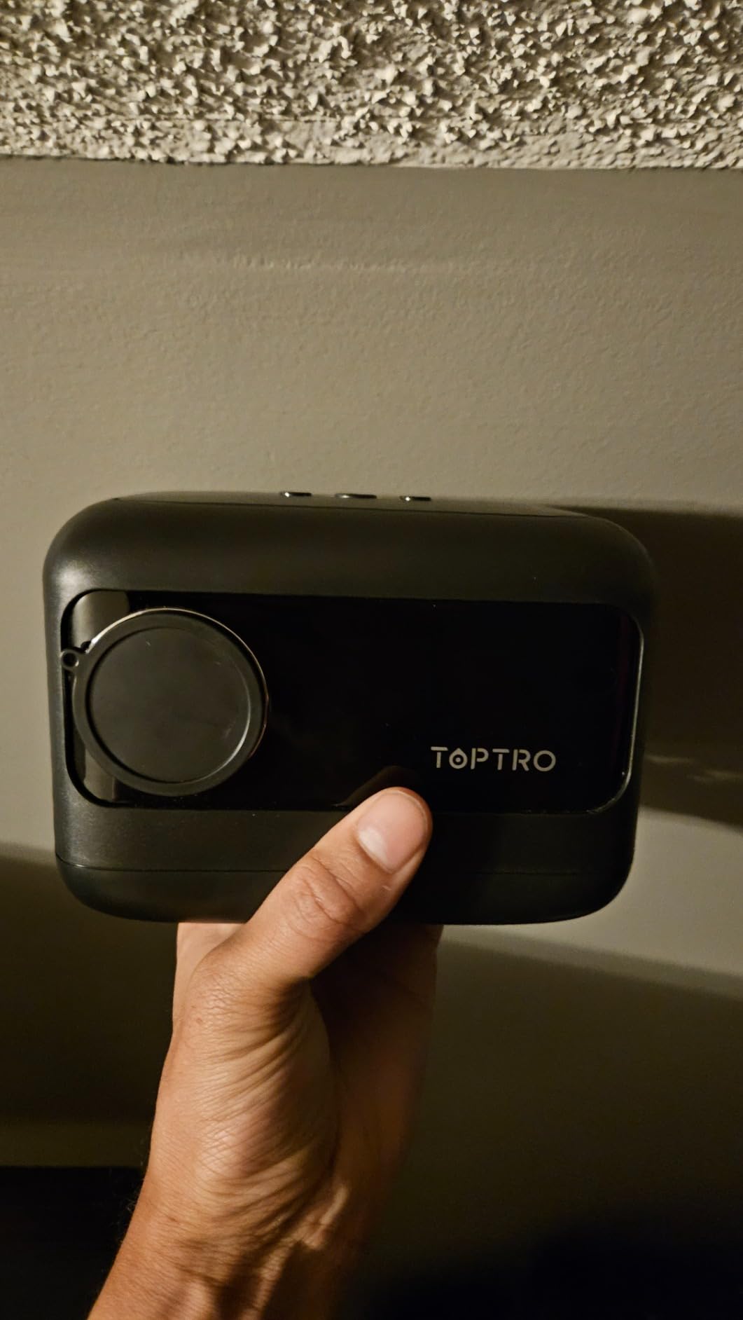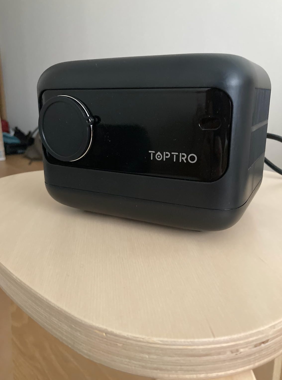 A few minor gripes but nothing that would stop me from buying more: 1) The dust cap could use an actual attachment point. 2) A storage case would be nice instead of keeping the original boxes. 3) Had to use a plastic washer to fix the tripod thread issue – without it, the projector just spins on the tripod. 4) The TOPTRO website isn’t accessible in the US, which is a bit of a pain. 5) My main peeve is how the title pops up when switching between mp4 clips in the same folder – kinda ruins the illusion. Merging clips into one long video is a workaround, but a firmware update to hide this would be ideal.