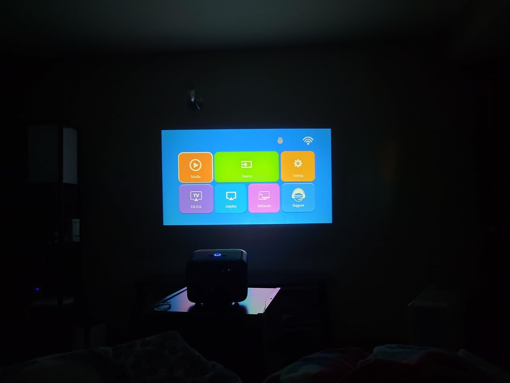 The projector is amazing—perfectly suits our bedroom setup.