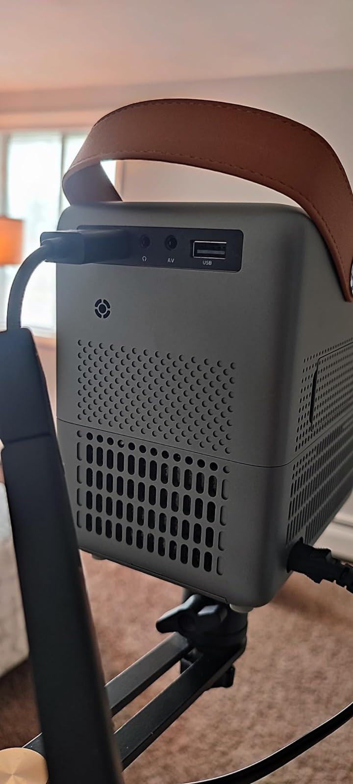 I’m one that reads reviews, positive & negative. Everyone’s experience will be different, but overall, you won’t go wrong with this. Mild humming, to let you know it’s working, good leather handle on it for easy movement. HDMI port for an easy plug & play to your Fire TV or even gaming console.