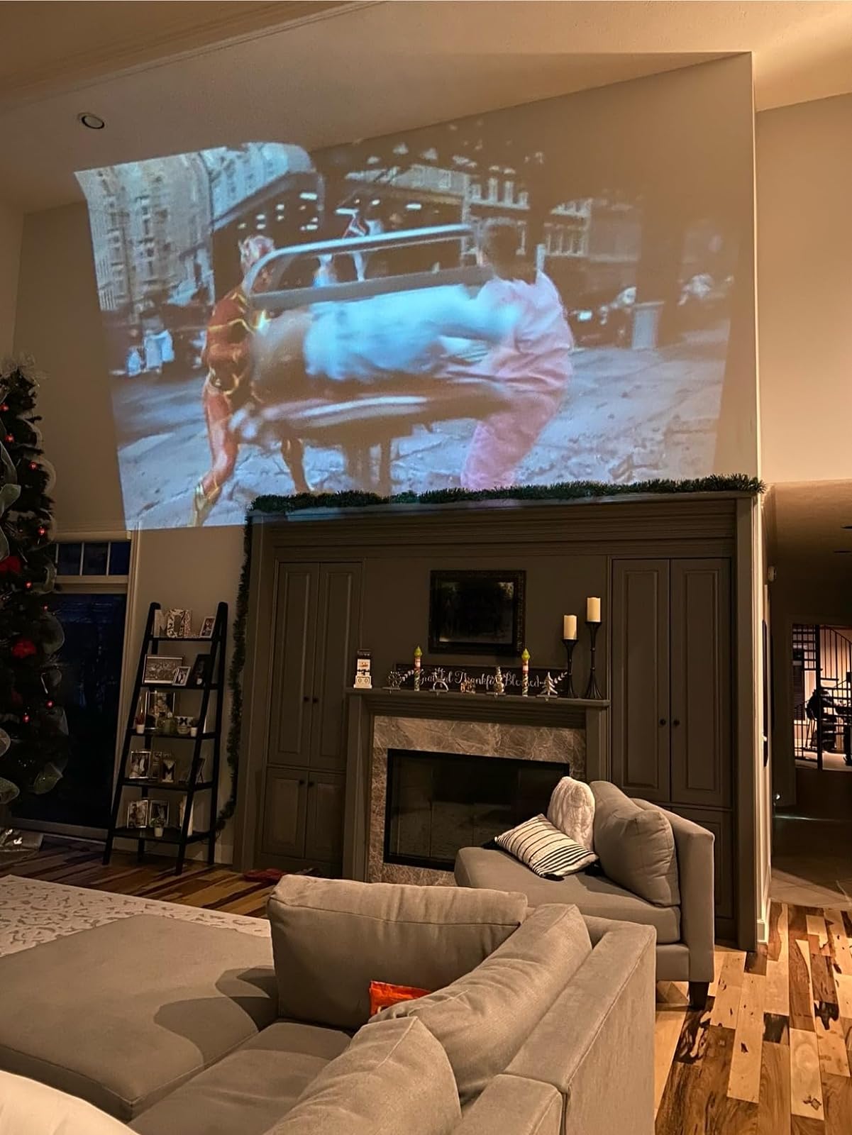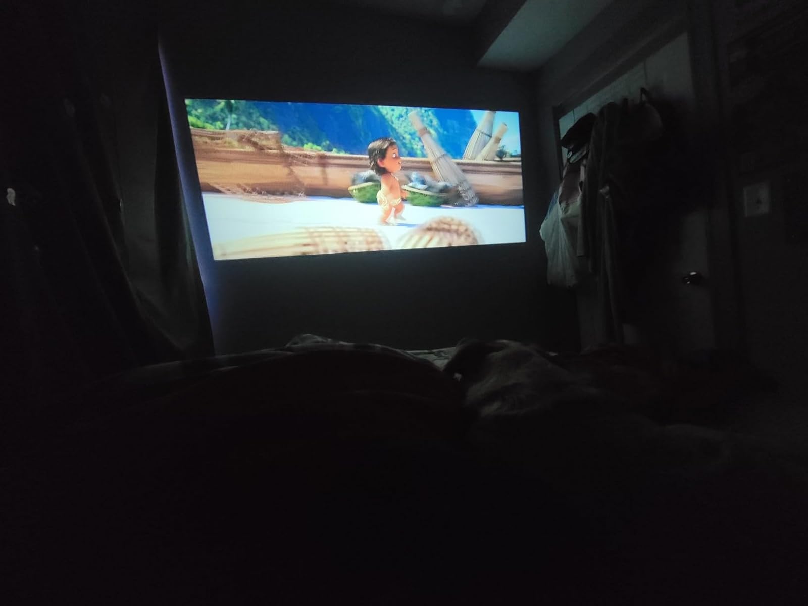 I use the projector in my bedroom along the wall for a giant image and it does not disappoint. It’s quiet and with the HDMI input, I watch my ROKU shows and movies wherever I want.