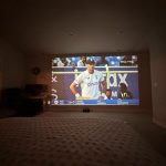 Had this set up for my daughter whenever she feels like she needs some screen time. It may seem not too clear in the pictures but they were taken around lunch time on a very sunny day (looks much better in person). I am using an open drywall space and this room happens to get a lot of sun throughout the day. Loved the quality and how easy it is to set up everytime I need to use it. I can’t wait to try it on camping trips as it’s warming up nicely. Will update when it happens.