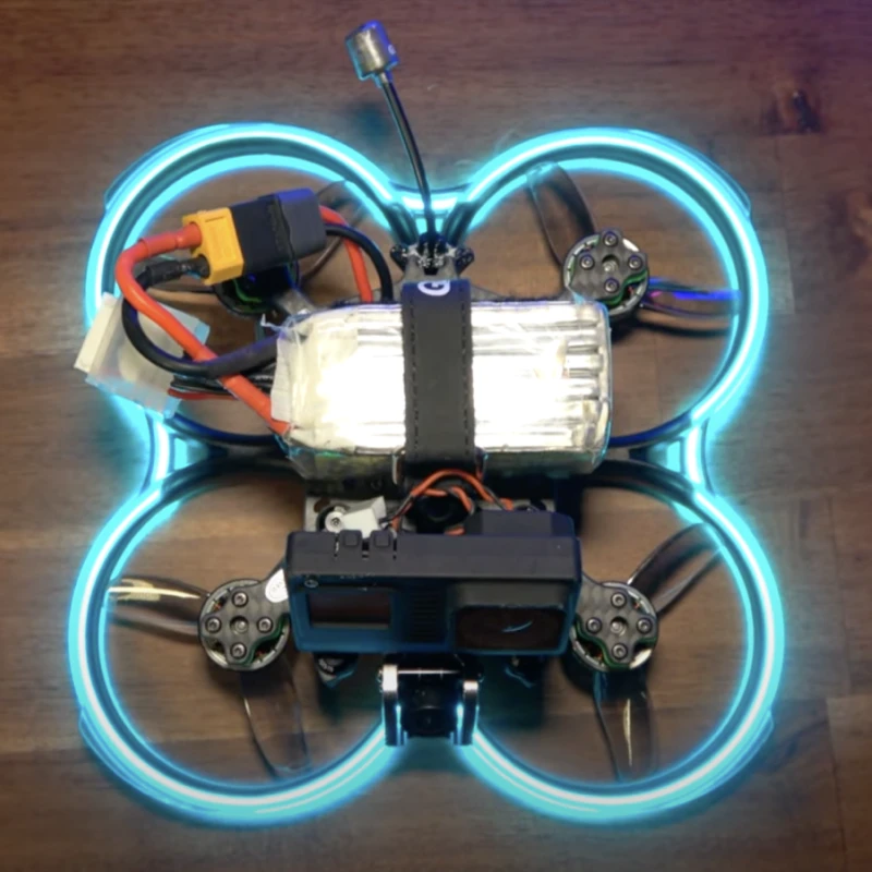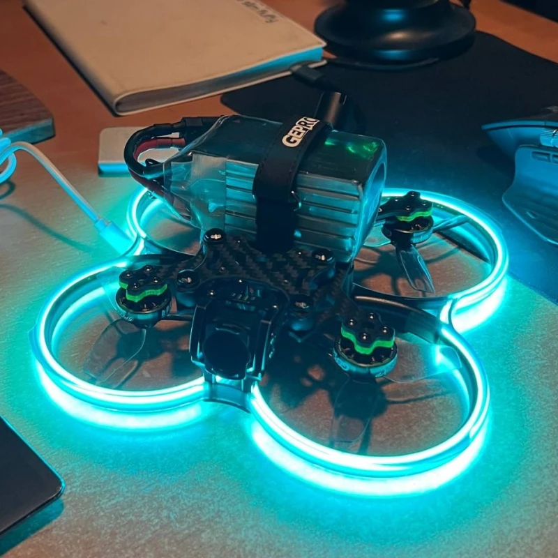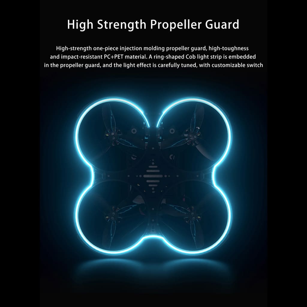 • Embedded Cob light strip in the propeller guard for visibility and aesthetic appeal.